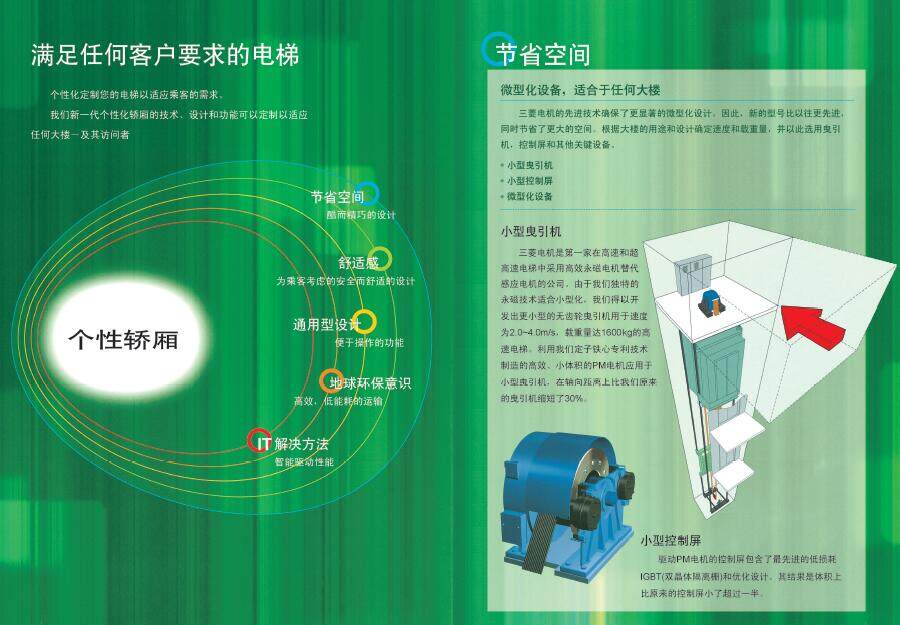 新一代永磁同步无齿轮曳引机驱动的小机房中高速电梯