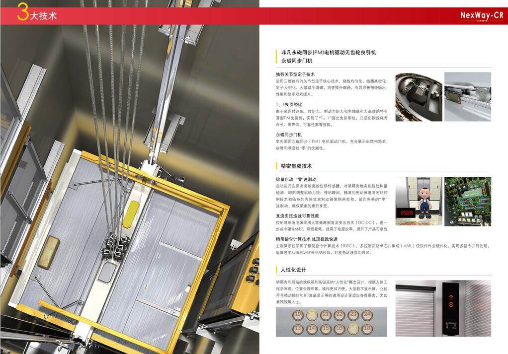 NexWay-CR是由日本三菱与上海三菱联合开发的新一代永磁同步无齿轮曳引驱动小机房住宅电梯,是广受用户好评的GPS-CR系列住宅电梯的升级换代产品。NexWay-CR基于NexWay-S乘客电梯的先进技术平台,具有更节能、更静音、更舒适、更节省空间等特点,它是以住宅用户为主要客户群的新一代住宅电梯。